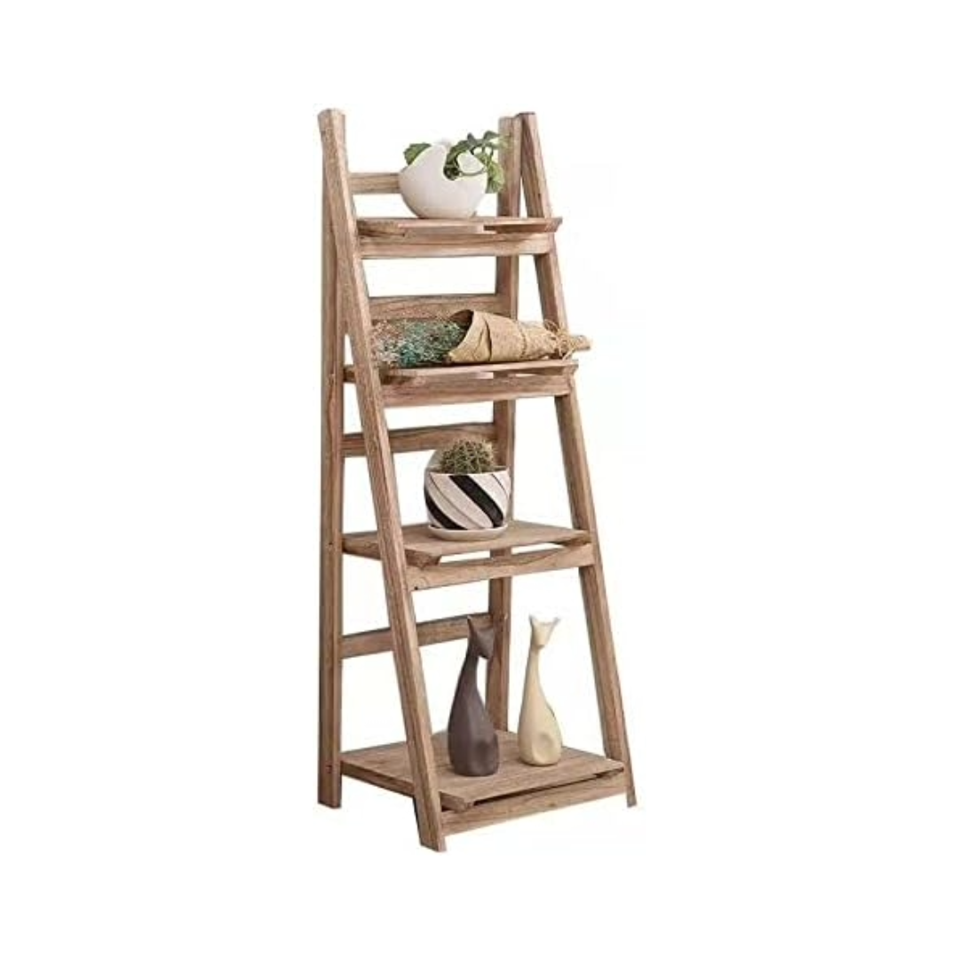 4-Step Foldable Wooden Plant stand Display Shelf (Natural Wood)