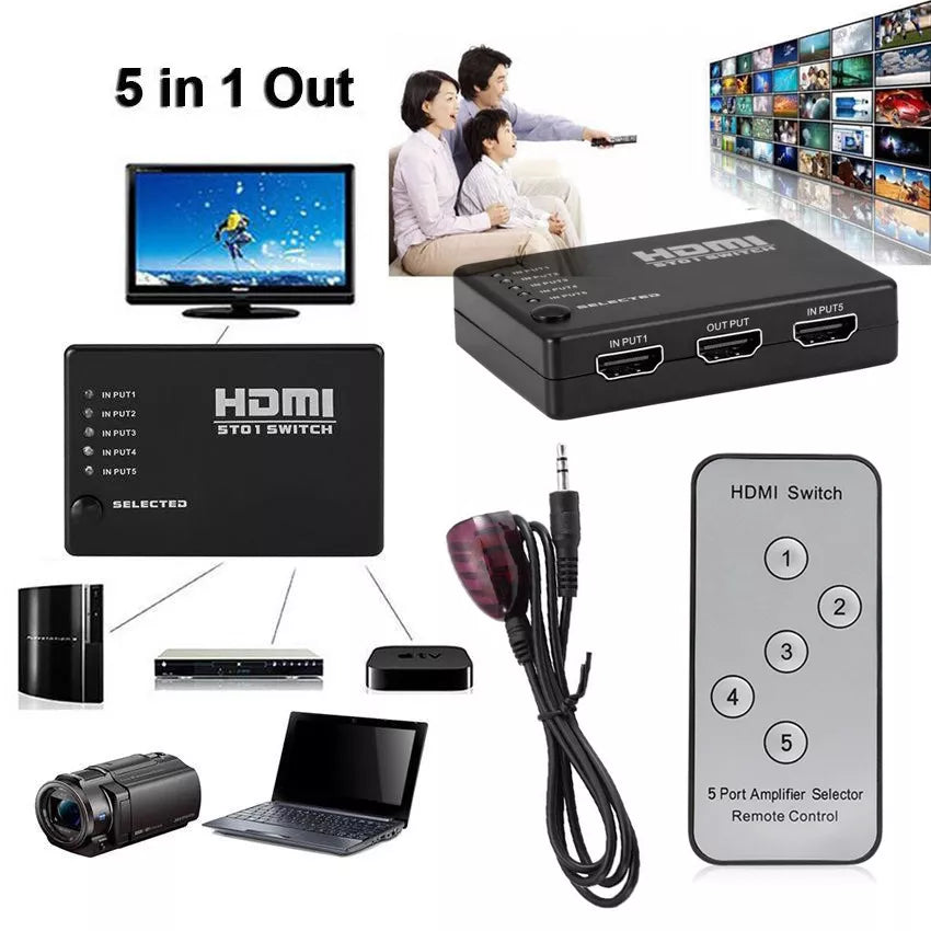 Upgrade your home entertainment setup with this 5-Port HDMI Amplifier Switcher, designed for seamless switching between multiple HDMI devices. Whether you're connecting gaming consoles, streaming devices, Blu-ray players, or other HDMI-enabled equipment, this switcher ensures smooth operation and excellent performance. With support for Full HD 1080p resolution, deep color, and multiple audio formats, it's perfect for any modern home theater system.