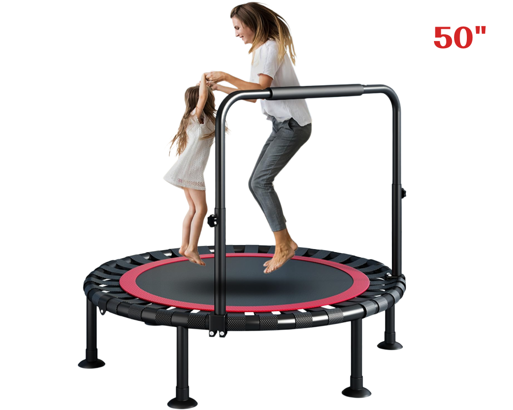 50" Mini Trampoline Rebounder with Adjustable Handlebar – Low-Impact Fitness Trampoline for Home Workouts