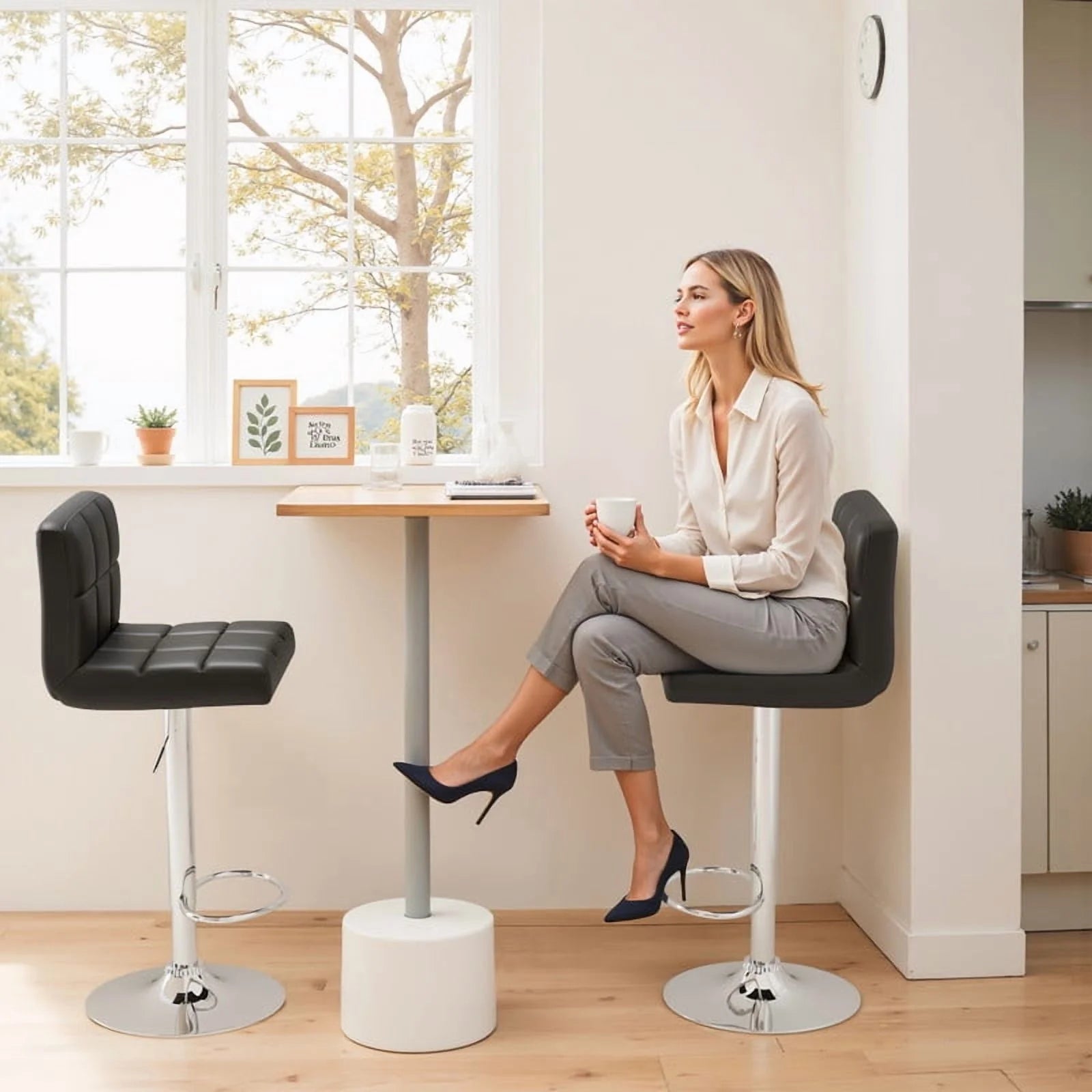 The Modern Bar Stool combines sophistication with everyday comfort. With adjustable height, a smooth 360° swivel, and luxurious PU leather upholstery, this Adjustable Bar Stool is built for comfort and made to last.