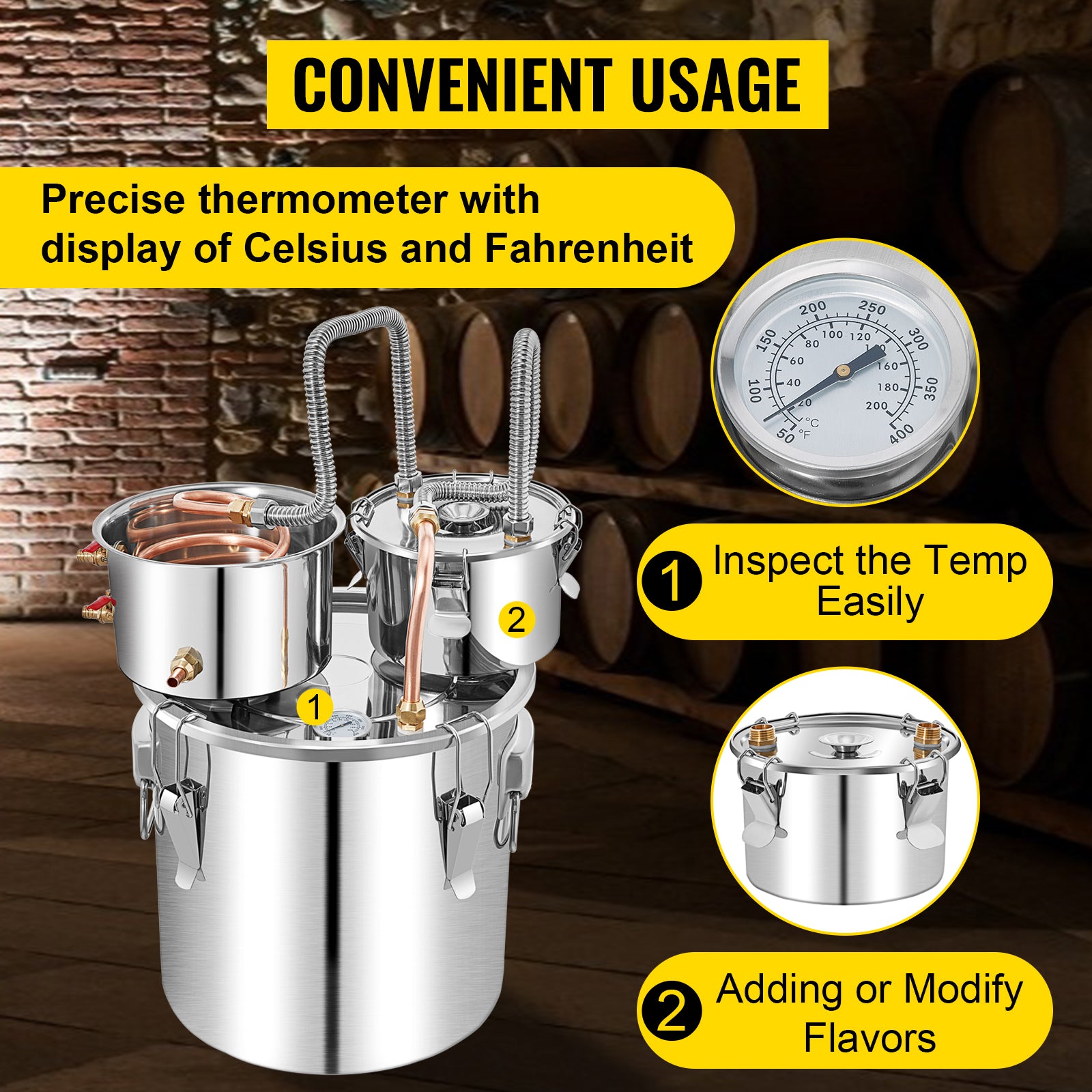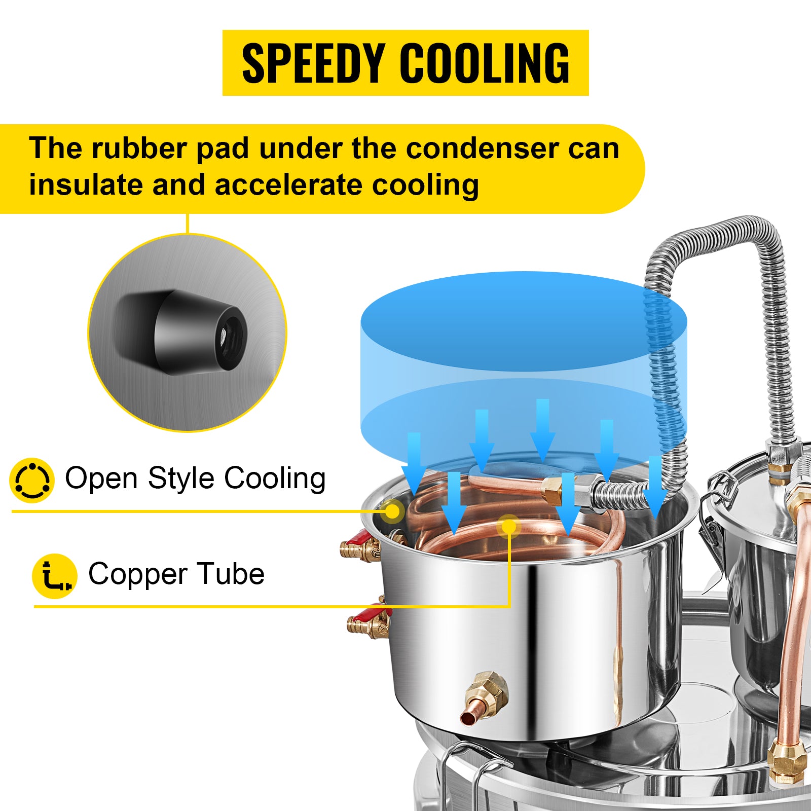 Upgrade your home distilling with this professional-grade Alcohol Still kit. Built with food-grade stainless steel, copper, and silicone, this Alcohol Still delivers durability, rapid cooling, and ease of use. With a 13.2-gallon capacity, it’s perfect for crafting whiskey, brandy, rum, tequila, vodka, ethanol, essential oils, and more. Whether you’re a beginner or an enthusiast, this Alcohol Still provides the performance you need for safe and efficient distillation.