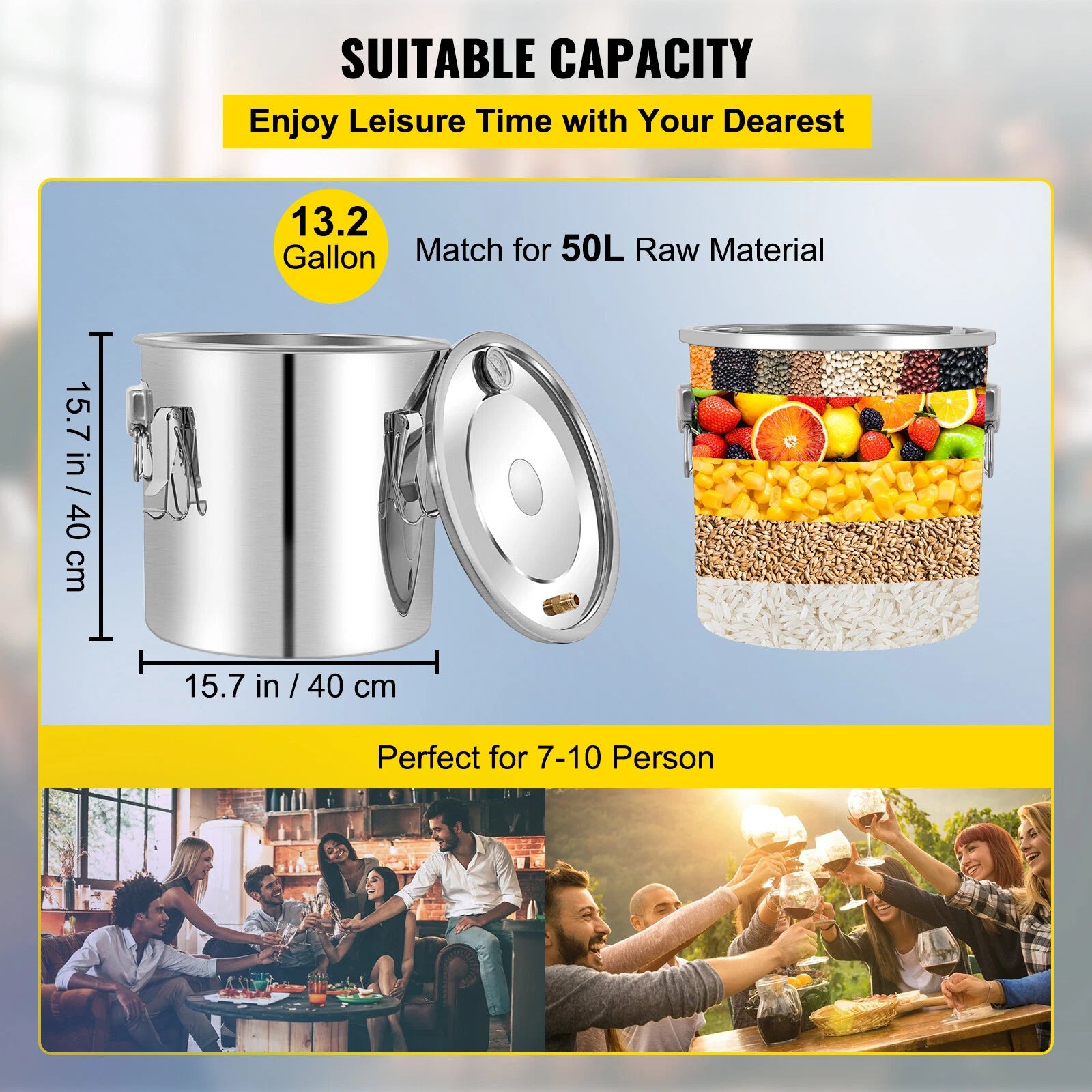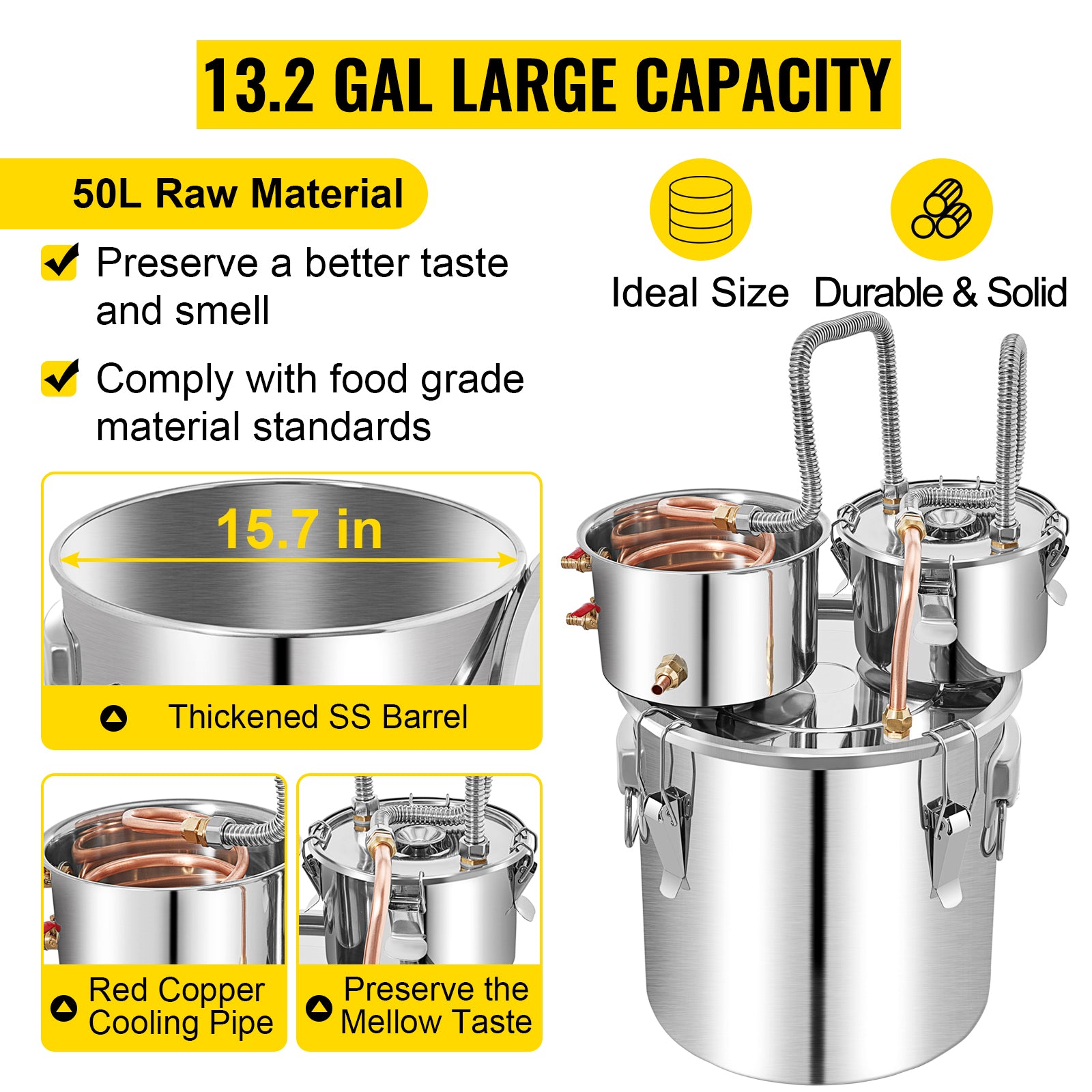 Alcohol Still Kit – 13.2 Gallon (50L) Stainless Steel Copper Alcohol Still with Thumper & Condenser
