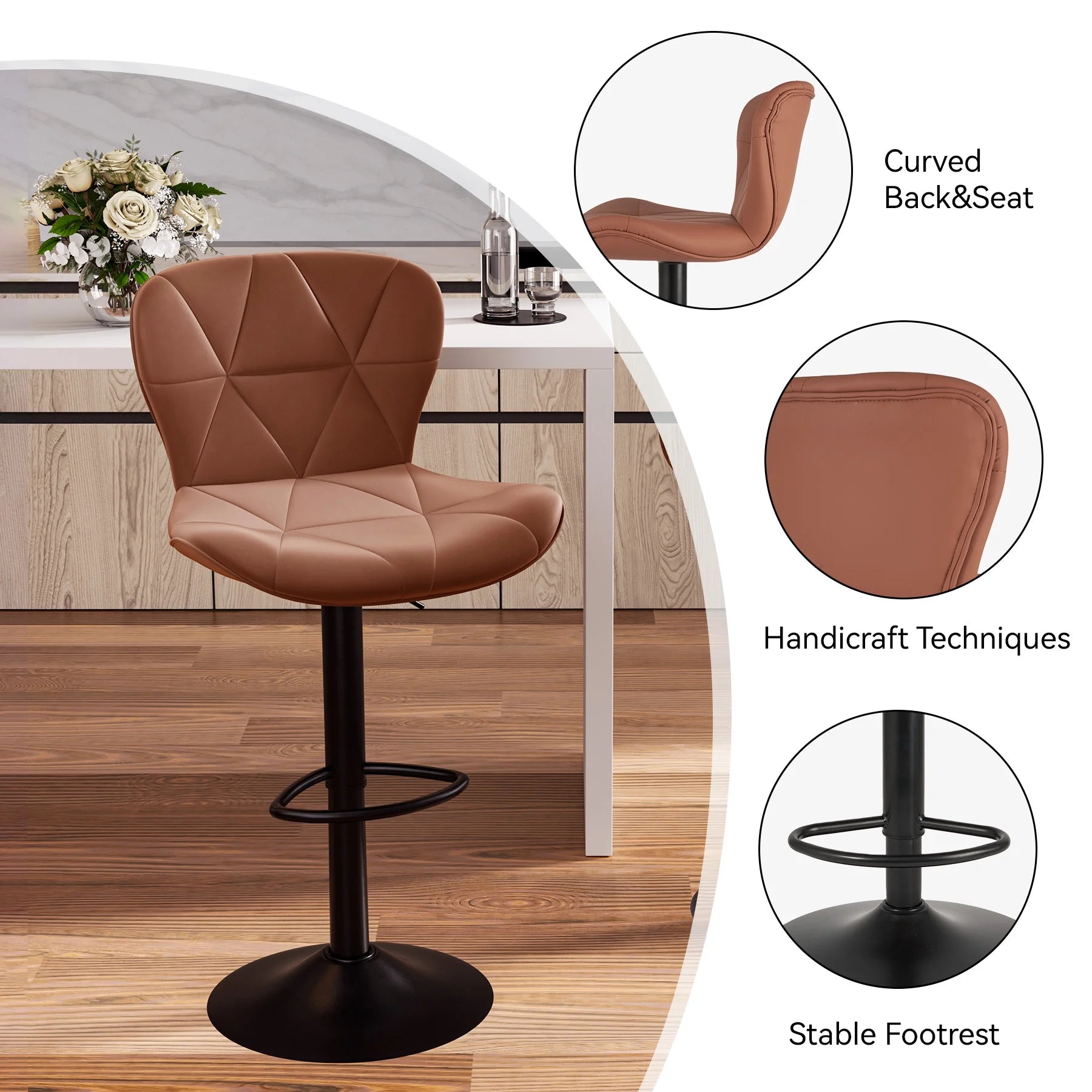 Modern Adjustable Swivel Bar Stool Set of 2 – Faux Leather Counter Stools | 360° Rotation | Ergonomic Comfort