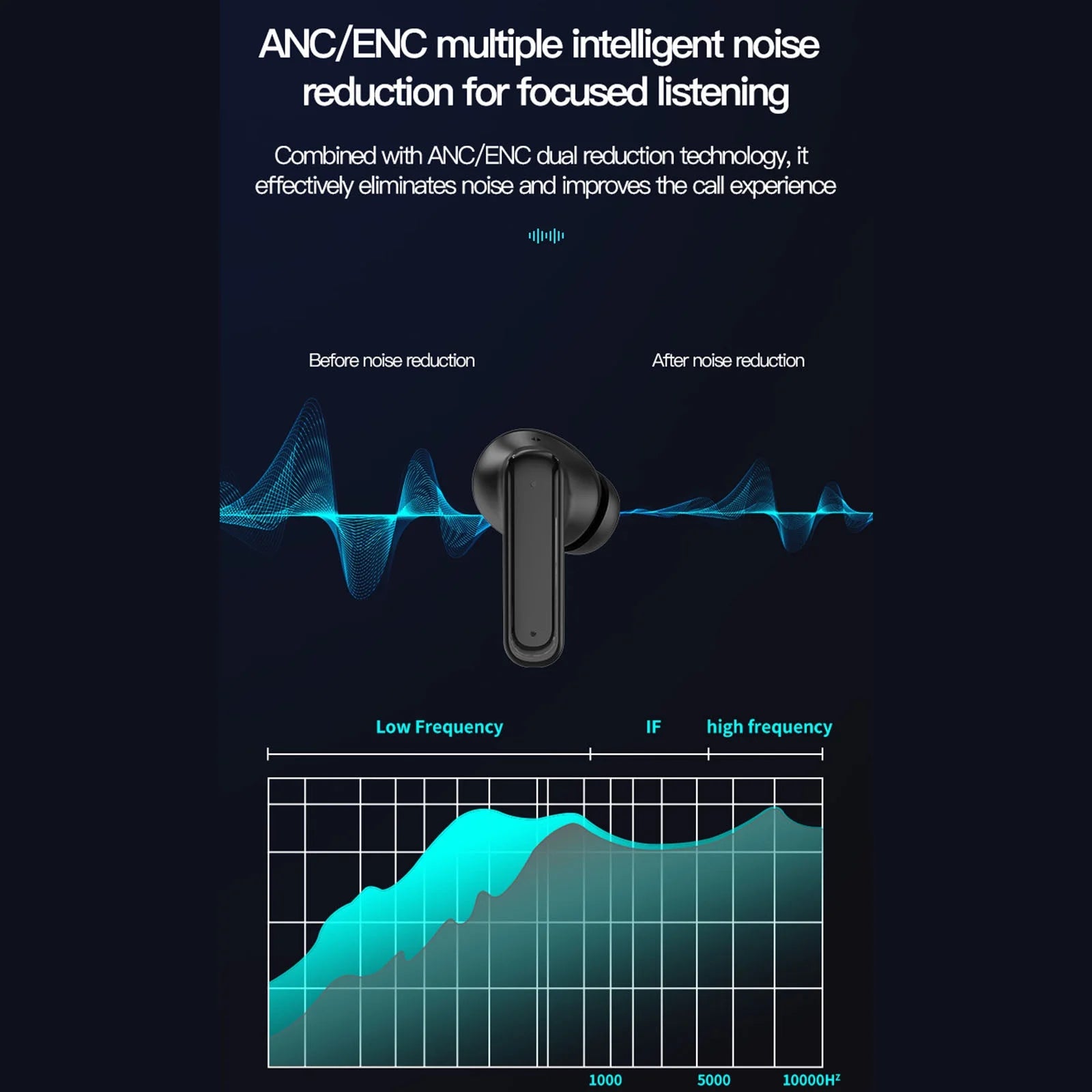 Advanced 48dB ANC blocks up to 97.69% of background noise.