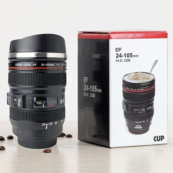 Super Classic Camera Lens Shaped Coffee Mug with Lid, Steel Insulated | Gifting Idea | DSLR Camera Lens Shaped Travel Thermos Cup (400 ml)