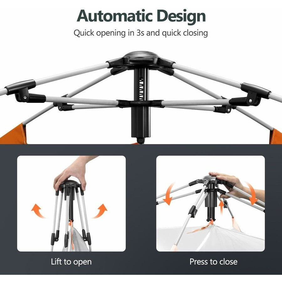 The Automatic Pop Up Camping Tent is built for those who want simplicity, reliability, and all-weather protection. Its hydraulic mechanism lets you set up camp in just three seconds, while waterproof fabrics and mesh ventilation make the Automatic Pop Up Camping Tent ideal for any season.