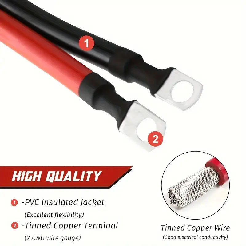 Upgrade your vehicle or solar battery system with this reliable 4AWG Car Battery Cable Set. Designed for high amperage capacity, superior flexibility, and long-lasting durability, these heavy-duty cables are perfect for a wide range of applications including motorcycles, cars, ATVs, RVs, marine, solar, and traction batteries.