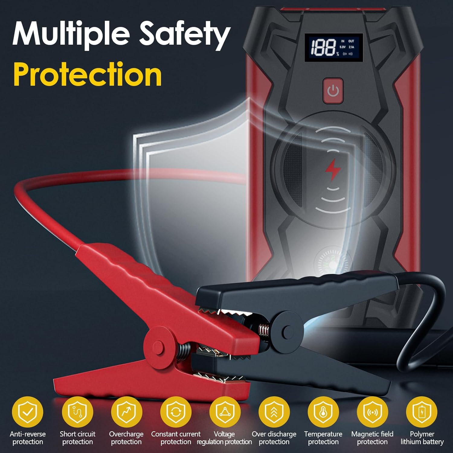 This GPED Jump Starter is more than just a Car Jump Starter — it’s a complete Road Trip Kit with an Emergency Jump Starter, Portable Power Bank, LED flashlight, and safety features. Keep it in your car, RV, or travel bag and you’ll always have a reliable backup.