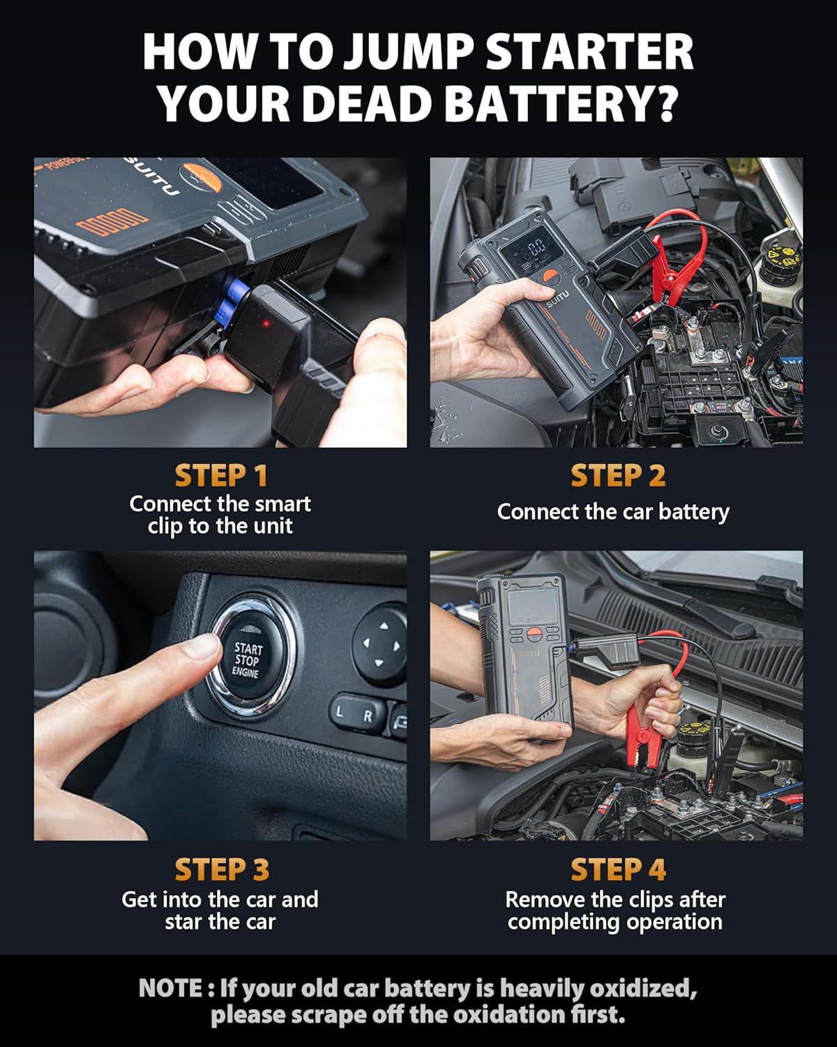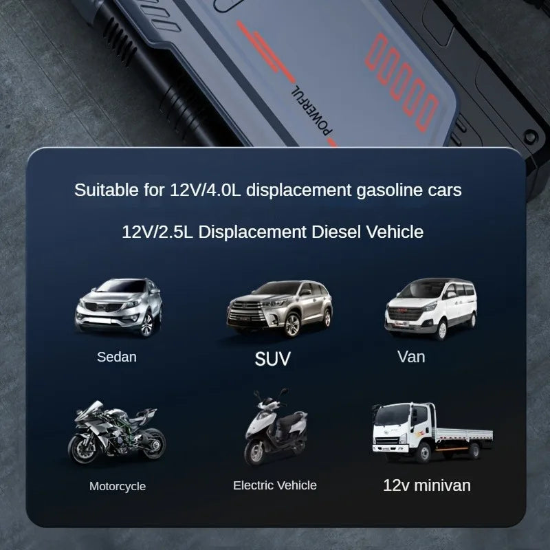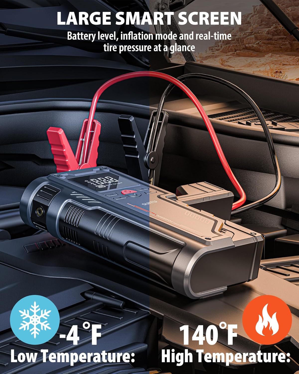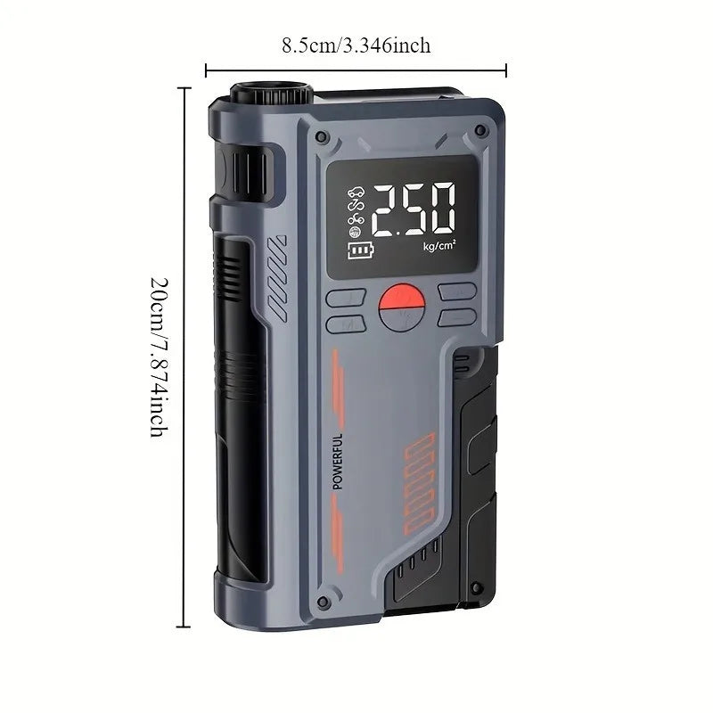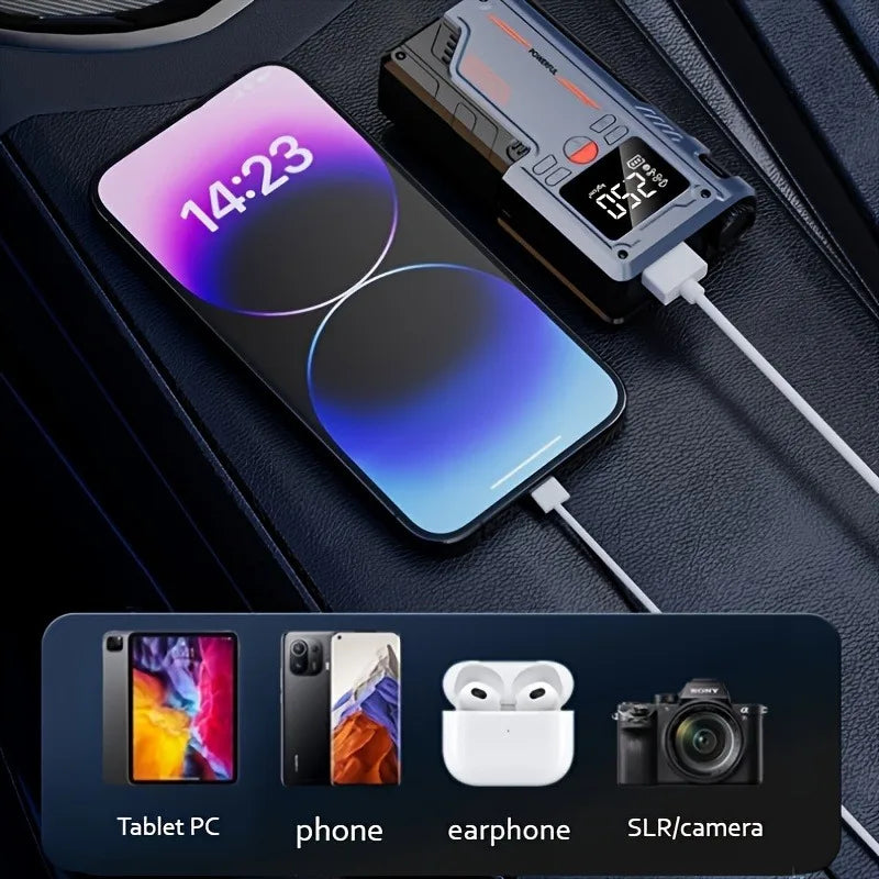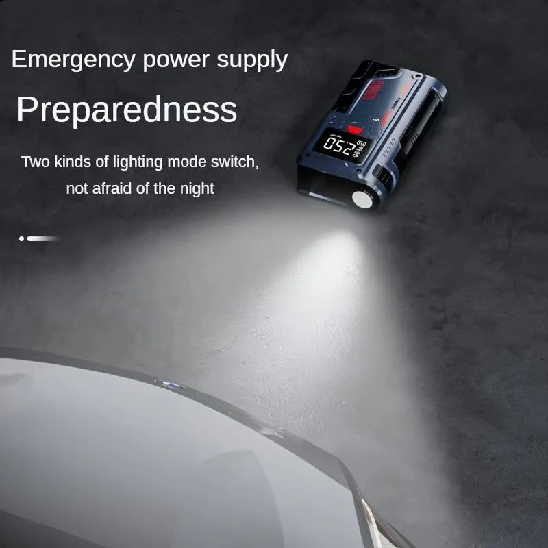Be ready for any roadside emergency with this Portable Car Jump Starter & Tire Inflator, a powerful all-in-one solution that delivers instant car starting, quick tire inflation, and portable power on demand. With a 1500A peak current, integrated LED light, and tire pressure monitoring, this Jump Starter & Tire Inflator ensures reliability and safety whenever and wherever you need it. Compact, durable, and designed for convenience, this Jump Starter & Tire Inflator is the ultimate companion for your vehicle.