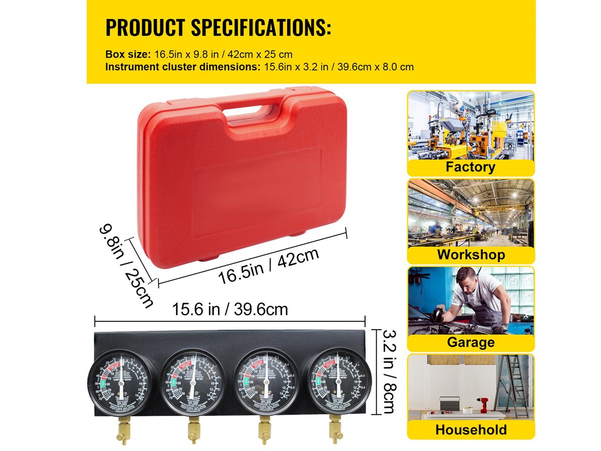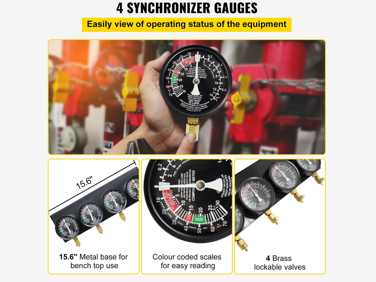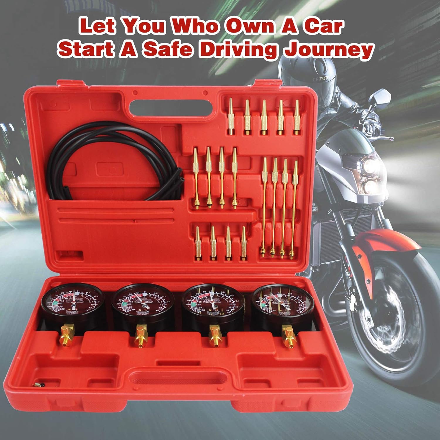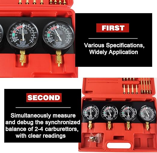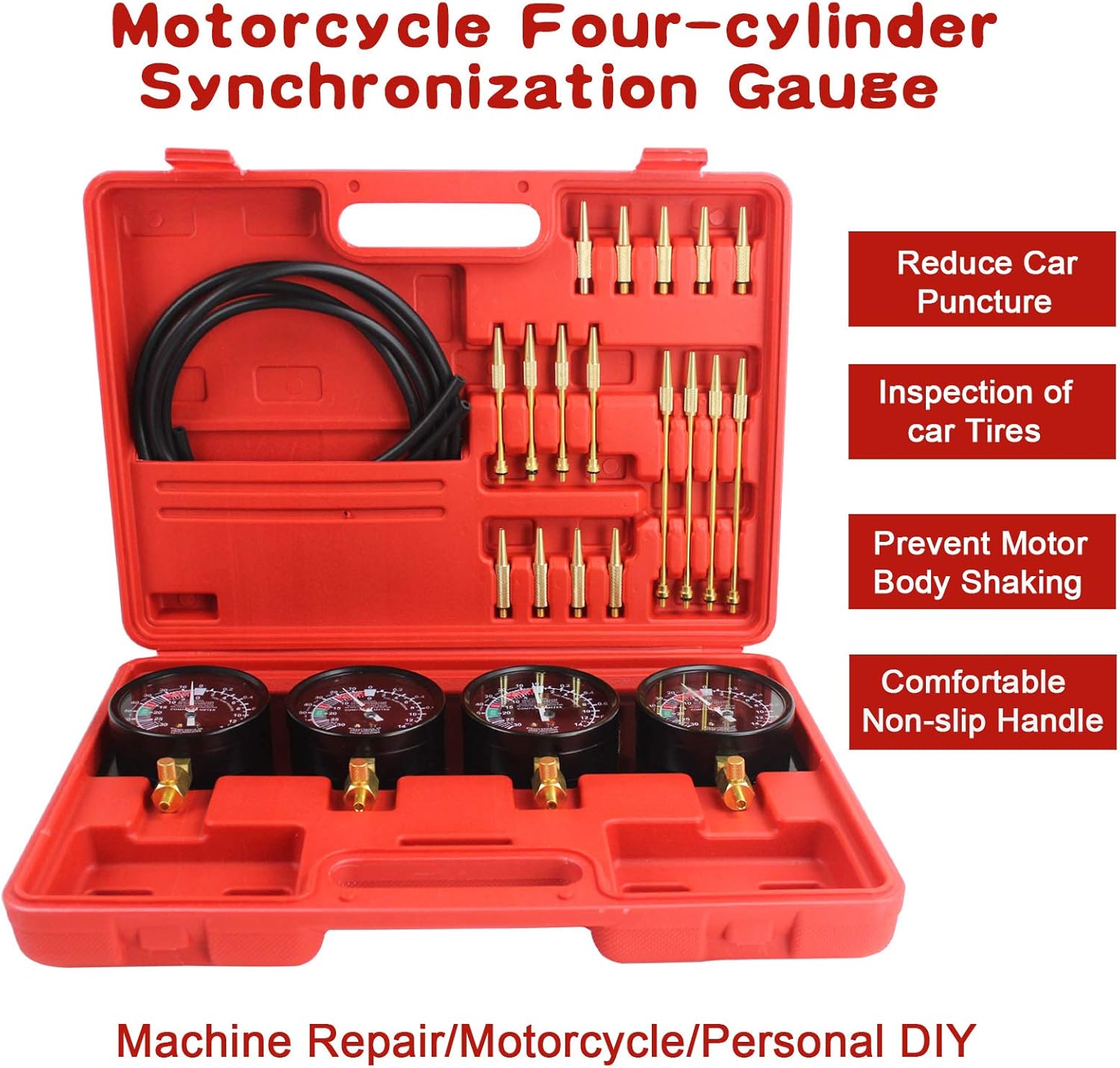 Carburetor Vacuum Synchronizer Kit – 4 Gauge Motorcycle Carb Tuning Tool | Vacuum Balancer Set with Case
