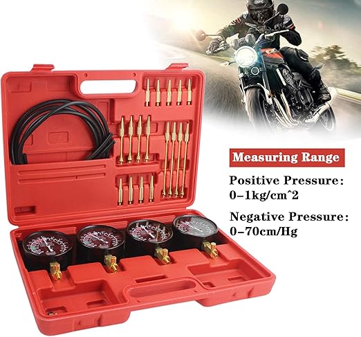 This Carburetor Vacuum Synchronizer Kit is a must-have for mechanics and riders who want accurate carburetor balancing. With 4 precision gauges, brass valves, universal adapters, and a sturdy case, this Vacuum Synchronizer Kit delivers professional-grade reliability.
