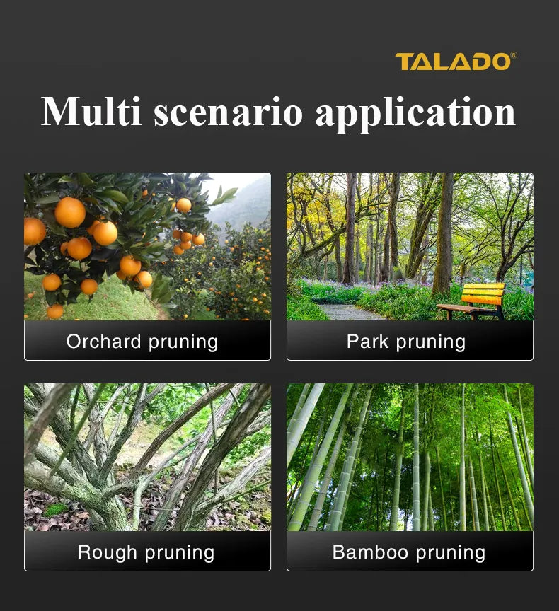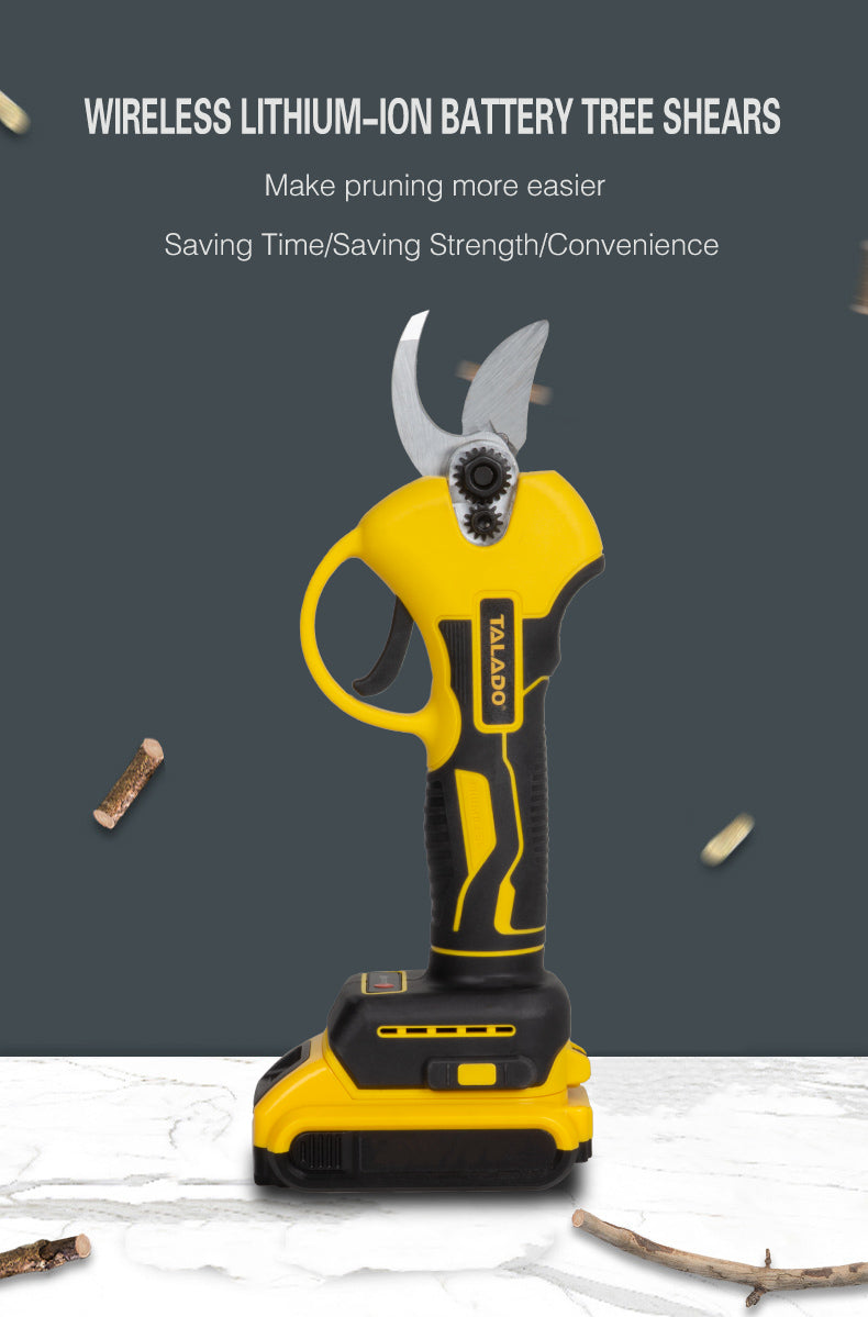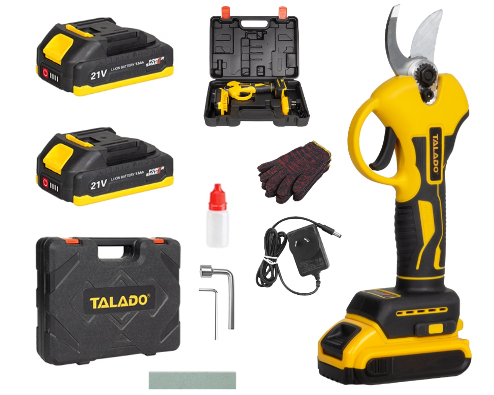 Experience fast, effortless, and precise cutting with the TALADO BIS Cordless Pruner, engineered for gardeners, orchard owners, landscapers, and professional agricultural work. This Cordless Pruner delivers clean cuts up to 25mm using high-strength steel blades and a powerful electric drive system. With long battery life, ergonomic handling, and compact portability, the Cordless Pruner allows you to prune fruit trees, shrubs, vines, and decorative plants with maximum speed and minimum effort. Built for durability and consistent performance, this Cordless Pruner is perfect for home and commercial use.