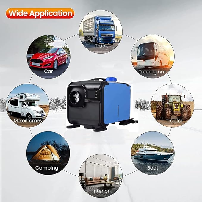 Stay warm and comfortable in your vehicle during cold weather with this 8kW Diesel Heater. Designed for efficient, fast heating and reliable long-term performance, this diesel air heater features an all-metal body, low noise operation, and advanced temperature control. Ideal for trucks, caravans, RVs, boats, and other vehicles, this parking heater ensures a cozy driving or resting environment even in extreme cold conditions. Easy to install and built with safety features, the diesel heater provides strong heat output, low fuel consumption, and durable service life.