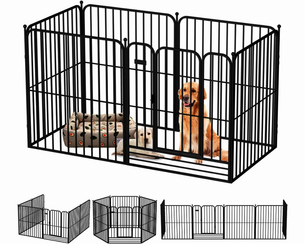 Give your pets the freedom to play safely with this 6 Panels Portable Dog Playpen, designed for both indoor and outdoor use. Made from heavy-duty metal with a durable powder-coated finish, this Portable Dog Playpen provides a secure, flexible, and customizable enclosure for puppies, small dogs, medium pets, and even large breeds.