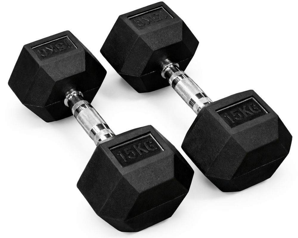 Dumbbell Set – 2 × 15kg Rubber Hex Dumbbells | 30kg Dumbbell Set for Strength Training