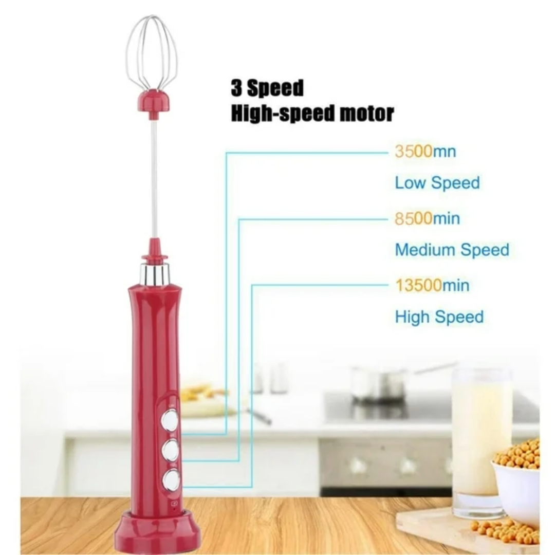 This multifunction milk frother has 3 optional speeds, high/medium/low. You can easily switch by pressing the corresponding buttons. This egg beater is small and lightweight, it will not add fatigue to your wrist when operating, and it can stand on its own with the charging base for easy storage, saving more space. The high-performance motor is powerful for fast frothing and works in low noise