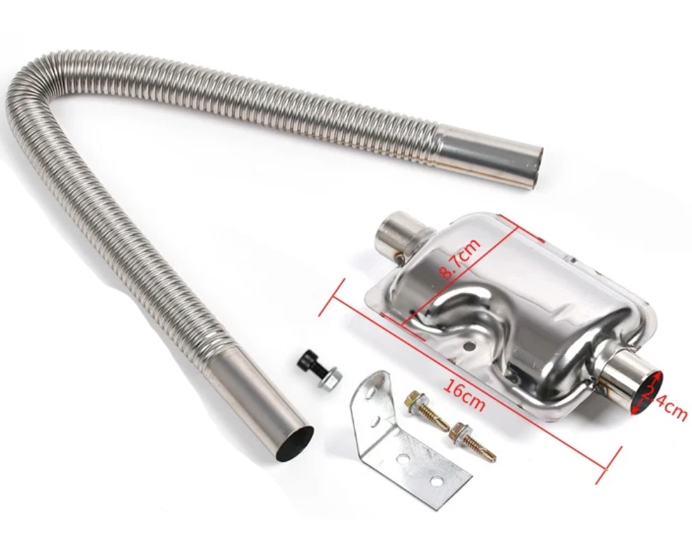 Upgrade your diesel air heater with this high-performance stainless steel exhaust pipe and silencer kit, designed for quiet, efficient, and long-lasting operation. Built from premium stainless steel, this set offers excellent heat resistance, corrosion protection, and a noise-reducing silencer, making it a must-have for any vehicle heating system.