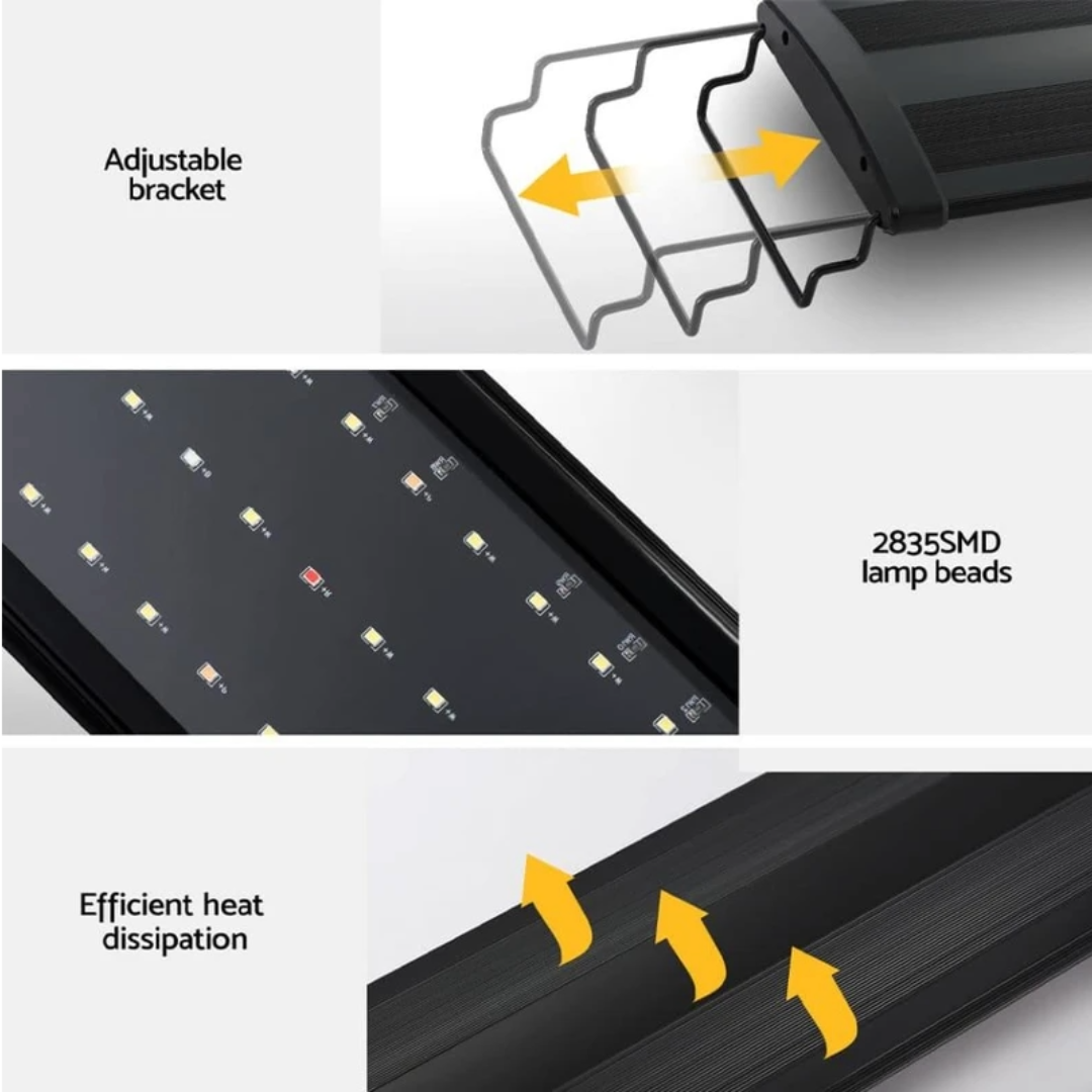 The Aquarium LED Light combines elegant design with professional illumination to bring your tank to life. Its 5-color LED spectrum enhances fish and plant vibrancy, while energy-efficient 2835 LEDs deliver bright, natural lighting at minimal power cost.