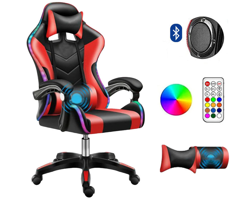 Comfortable Office Gaming Chair – Black & Red | RGB & Speaker Function
