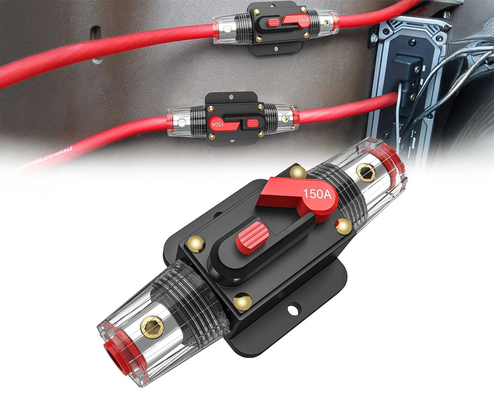 150A Inline Circuit Breaker – Manual Reset Fuse Holder | 12V–24V DC | For Car Audio, Marine, RV, and Off-Grid Systems