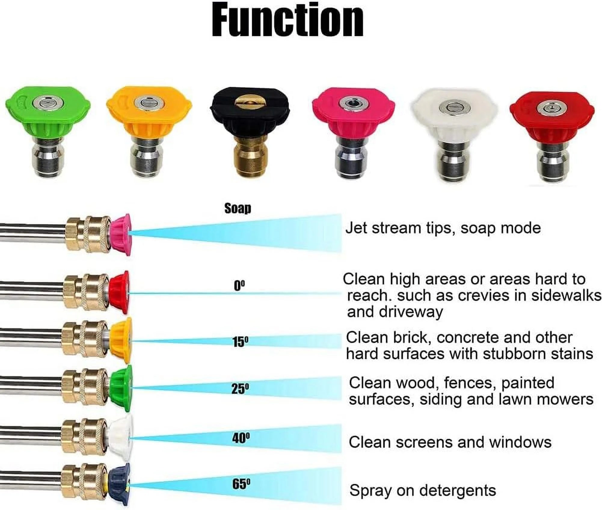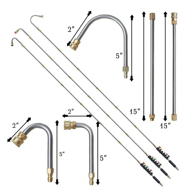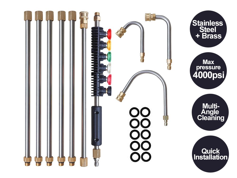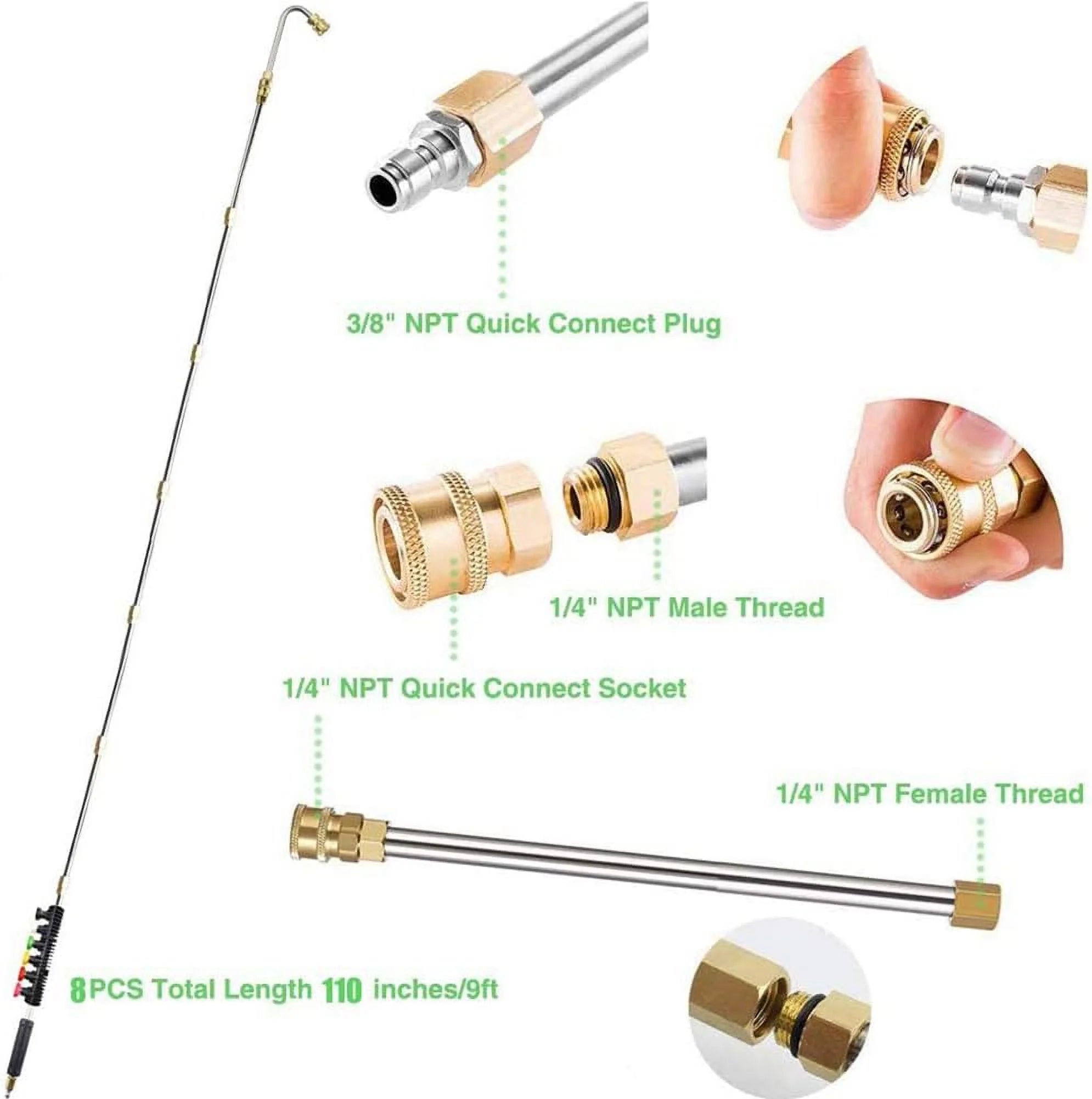 High-Pressure Washer Extension Pole Kit – Stainless Steel & Brass, 4000 PSI Rated, with 6 Spray Nozzles