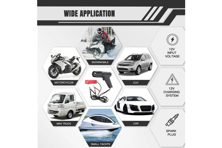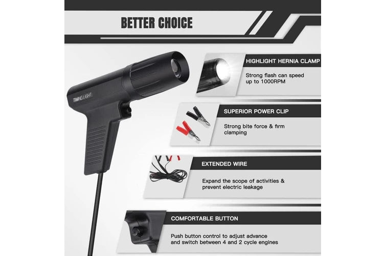 Keep your petrol engine performing at its best with this reliable 12V Auto Strobe Lamp LED Ignition Timing Gun. Designed for mechanics and car enthusiasts, this easy-to-use diagnostic tool accurately checks and adjusts ignition timing, ensuring optimal engine performance. Ignition Timing Light Featuring a high-intensity xenon bulb, ergonomic design, and extended cable reach, it’s a must-have for precise engine maintenance ignition timing light.