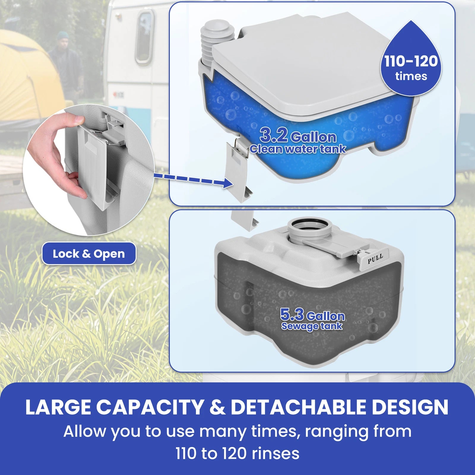 1 × 20L Portable Toilet with 12L Fresh Water Tank (T-type 3-way flush system)