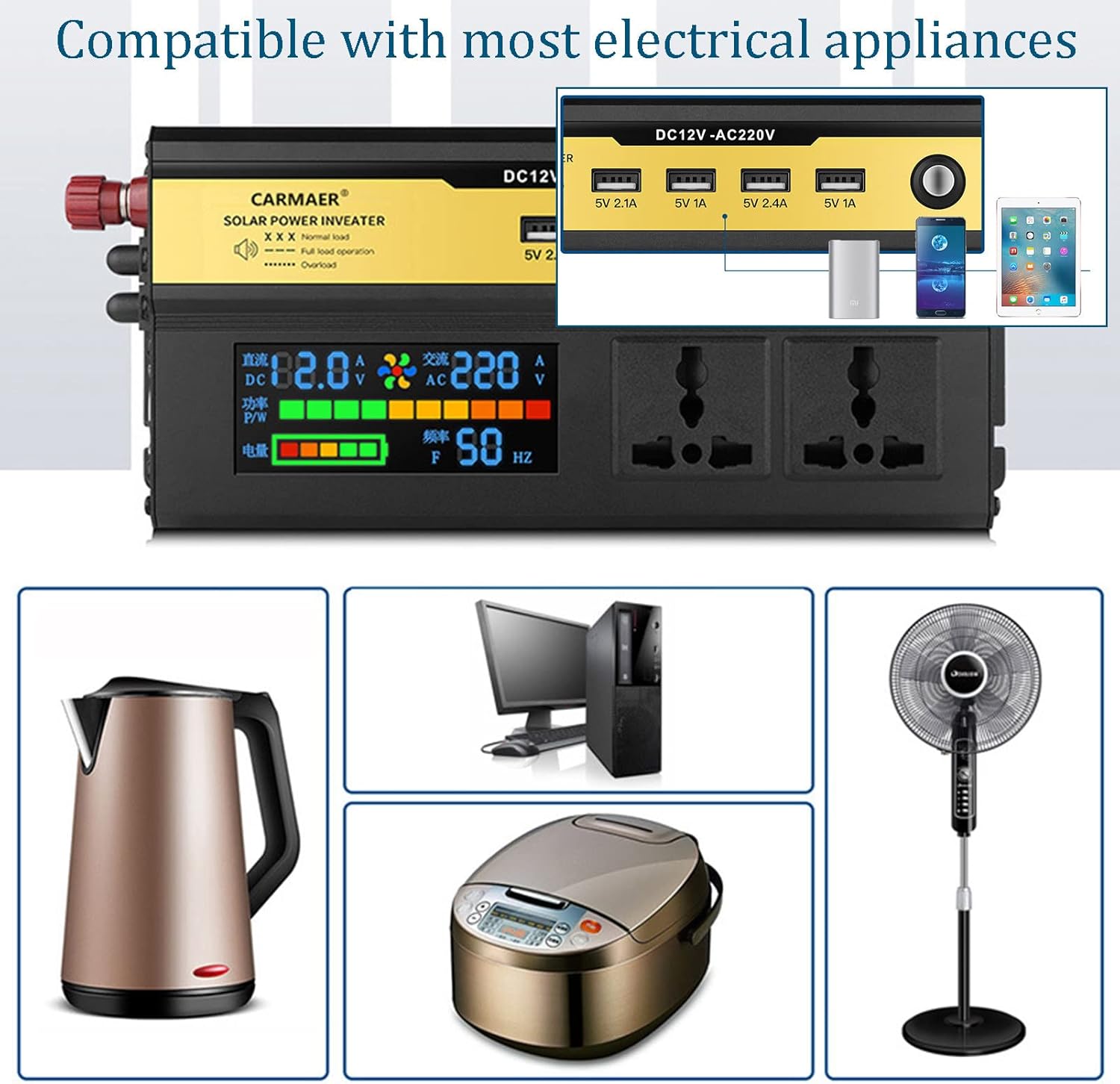 2200W 12V Solar Power Inverter – DC 12V to AC 220V | Digital Display | Car, Home & Outdoor Use