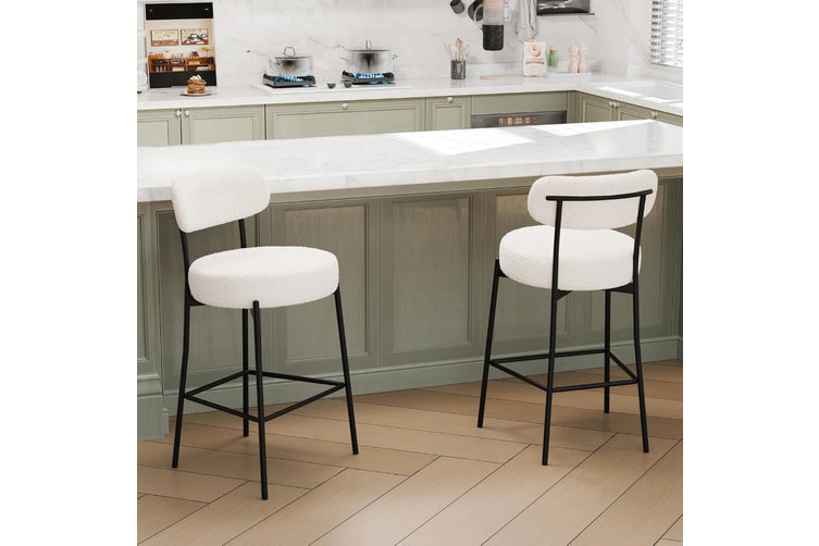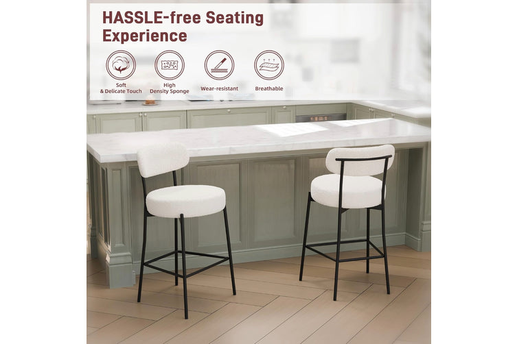 Set of 2 Ergonomic Counter Height Bar Stool – Sherpa Upholstered Comfort & Modern Design