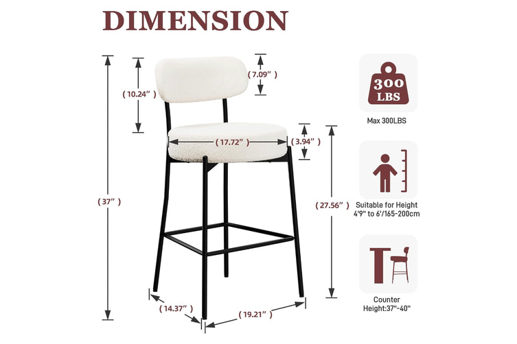 This Bar Stool set combines cozy sherpa upholstery, ergonomic design, and a sturdy steel frame to create the perfect seating solution. With its modern look and versatile use, the Bar Stool is ideal for any home or commercial space.
