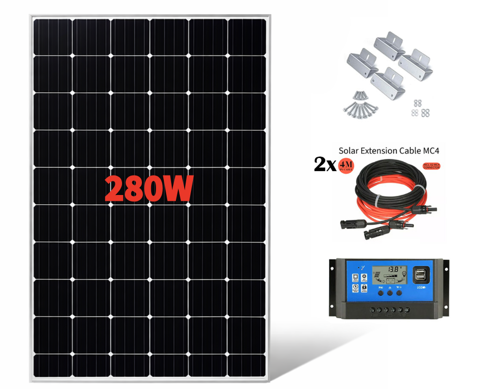 280W Solar Panel with Solar Controller, 2×MC4 Cable & Mounting Kit – Monocrystalline Solar Panel