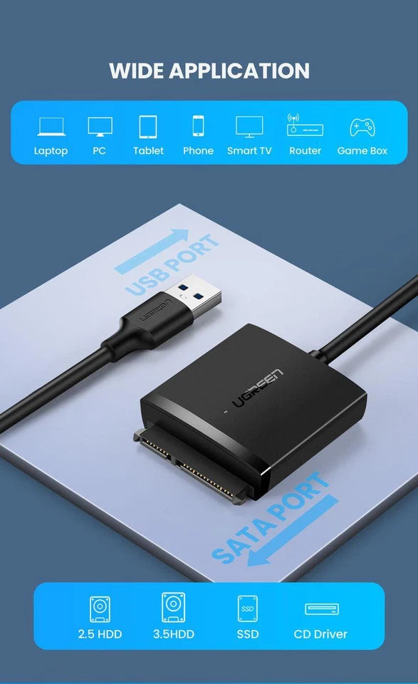 Genuine UGREEN 60561 USB 3.0 to SATA Cable Adapter (Supports 2.5” / 3.5” HDD & SSD)