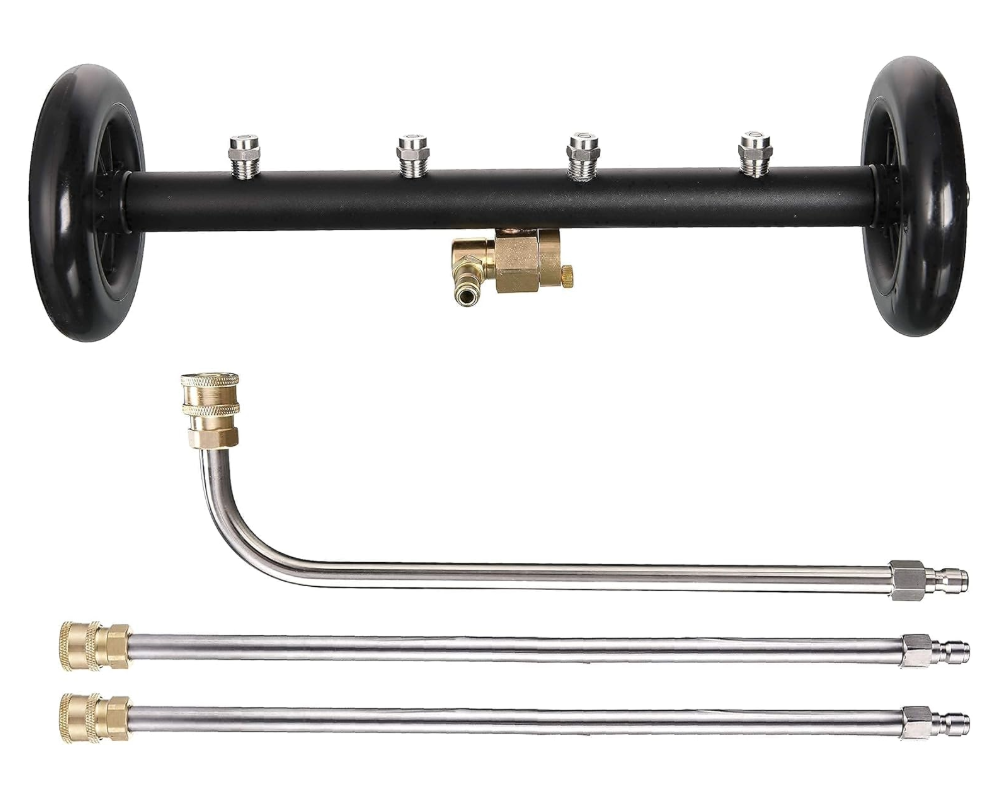 Achieve professional-grade cleaning at home with this high-performance Undercarriage Pressure Washer Water Broom, designed to remove stubborn dirt, mud, oil, and salt from vehicle underbodies, driveways, decks, patios, and more Pressure Washer Water Broom. With a powerful 4000 PSI maximum pressure and four high-impact spray nozzles, it delivers wide, even coverage for fast and efficient cleaning—without the need to crawl under vehicles.