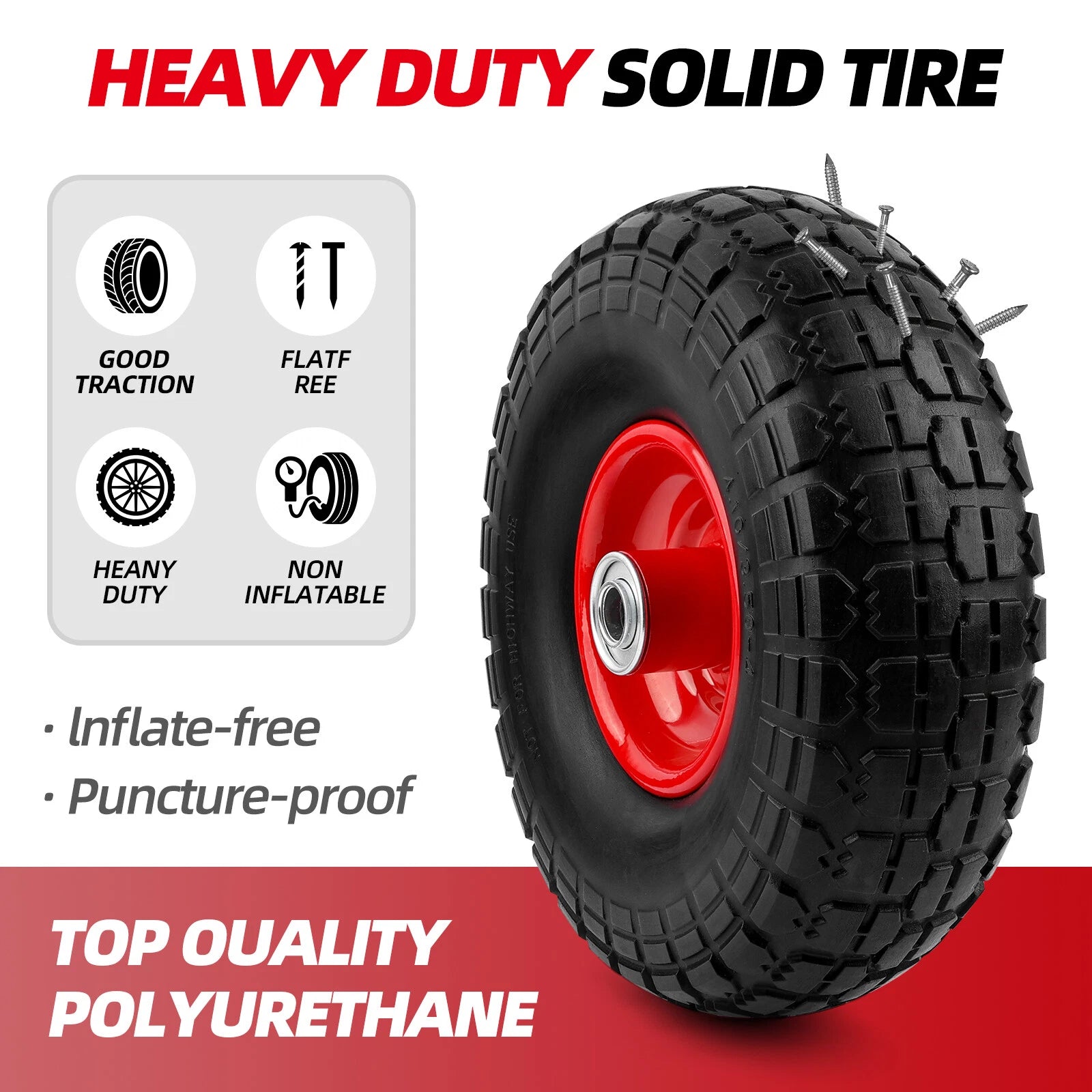 Upgrade your equipment with these heavy-duty, flat-free 10” solid tires. Designed for rugged reliability and smooth maneuverability, these tires eliminate the hassle of flats and punctures. Whether you're transporting tools, yard equipment, or supplies, these solid PU foam wheels keep your gear rolling with minimal effort and maximum durability.