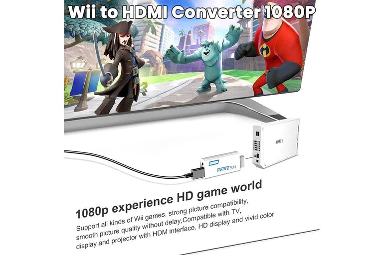 Upgrade your gaming experience with the Wii to HDMI Adapter Converter, a compact and efficient solution for connecting your Wii console to modern HDMI – enabled displays. This Wii2HDMI adapter delivers full HD 1080P output with upscaling capabilities, ensuring crisp and vibrant video quality. With its 3.5mm audio output, you can enjoy immersive sound alongside stunning visuals.